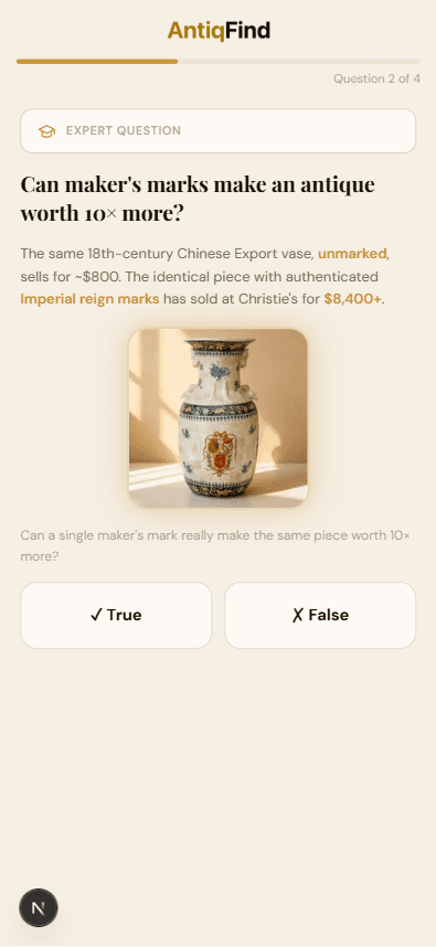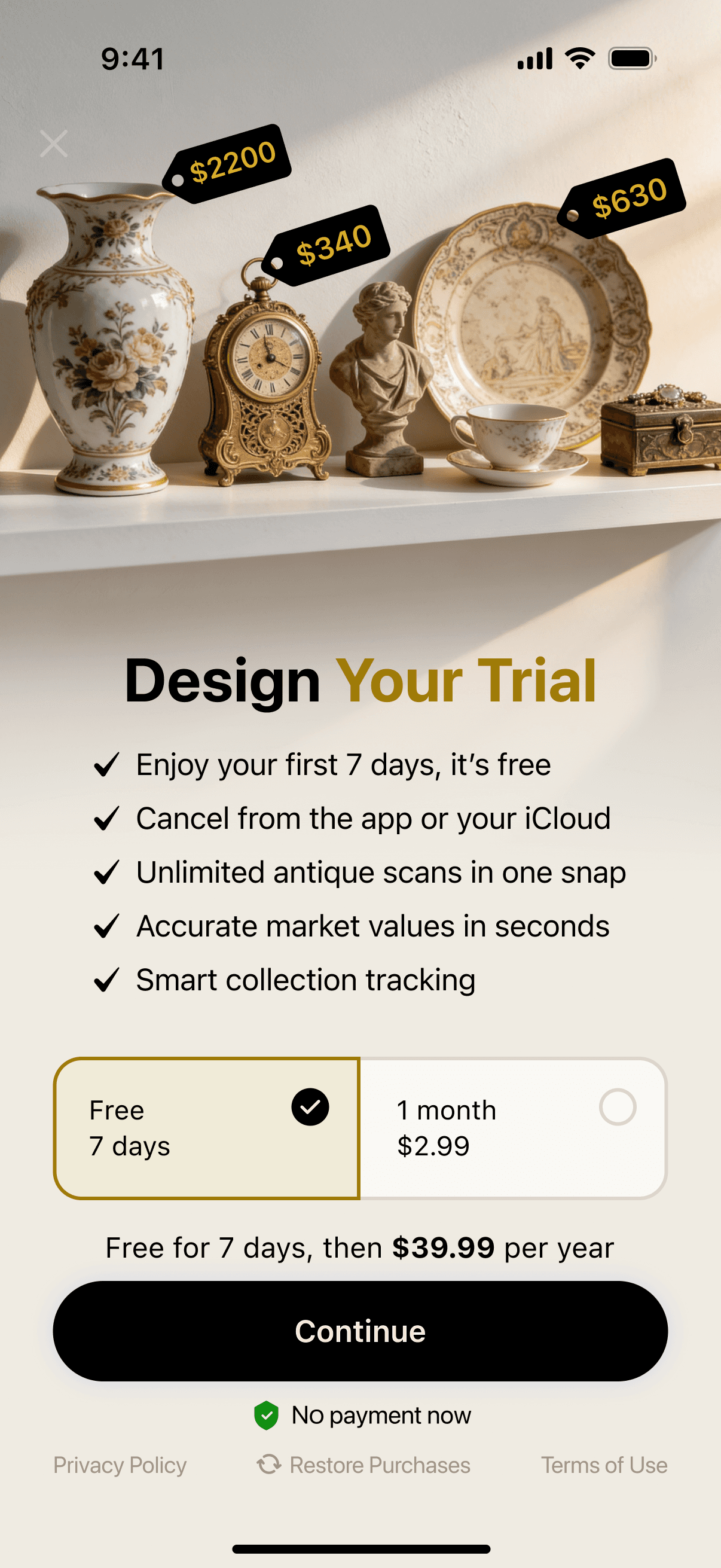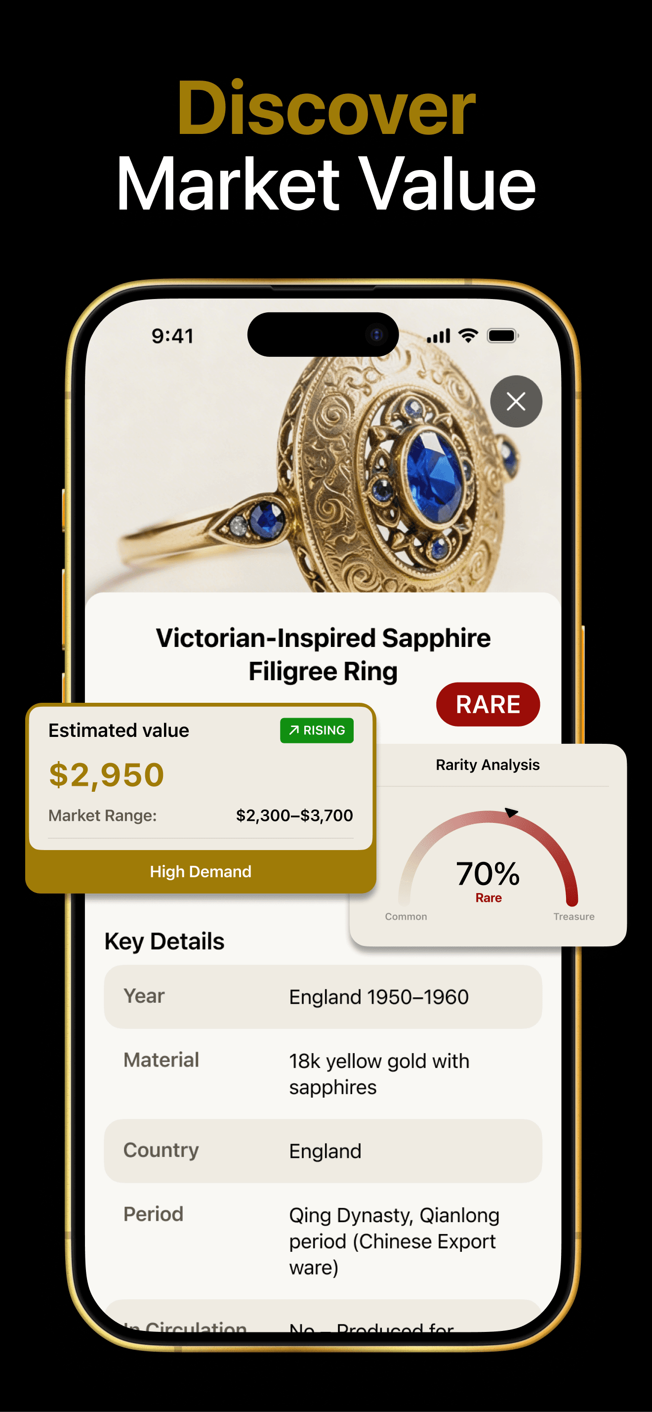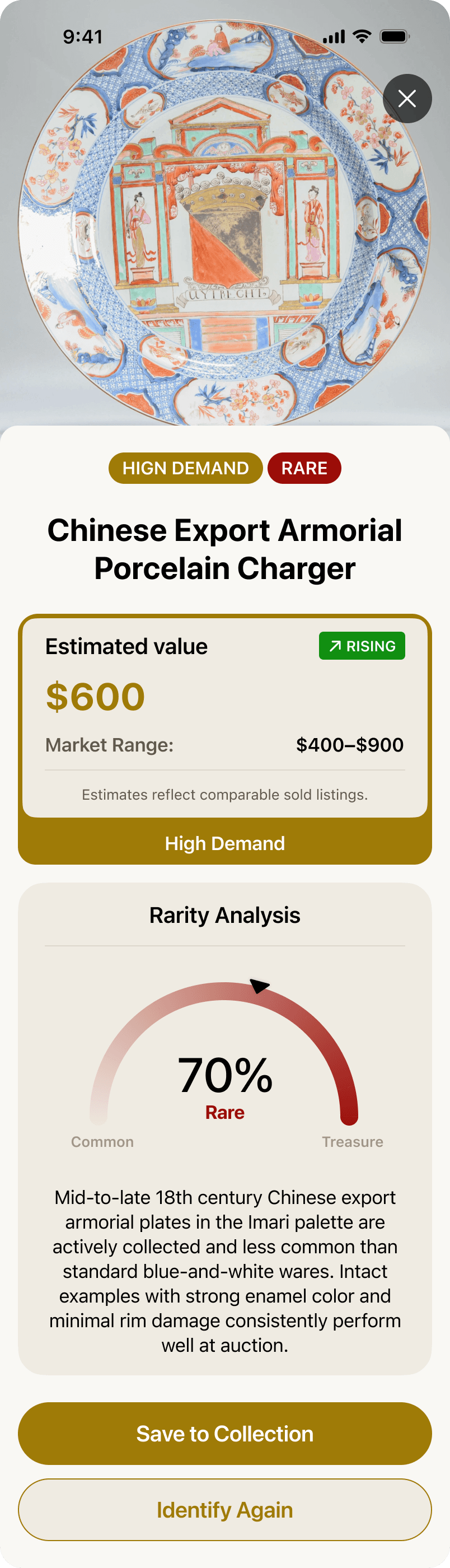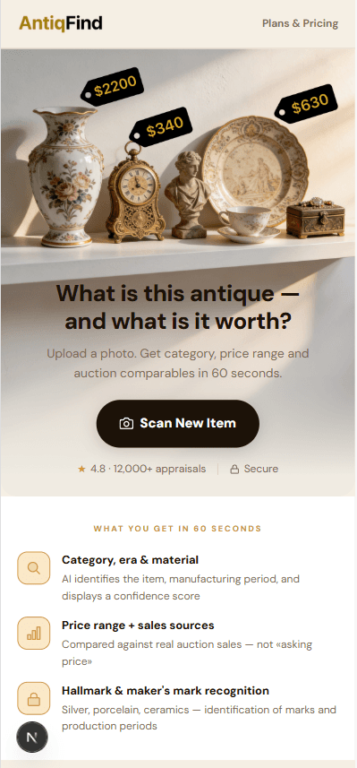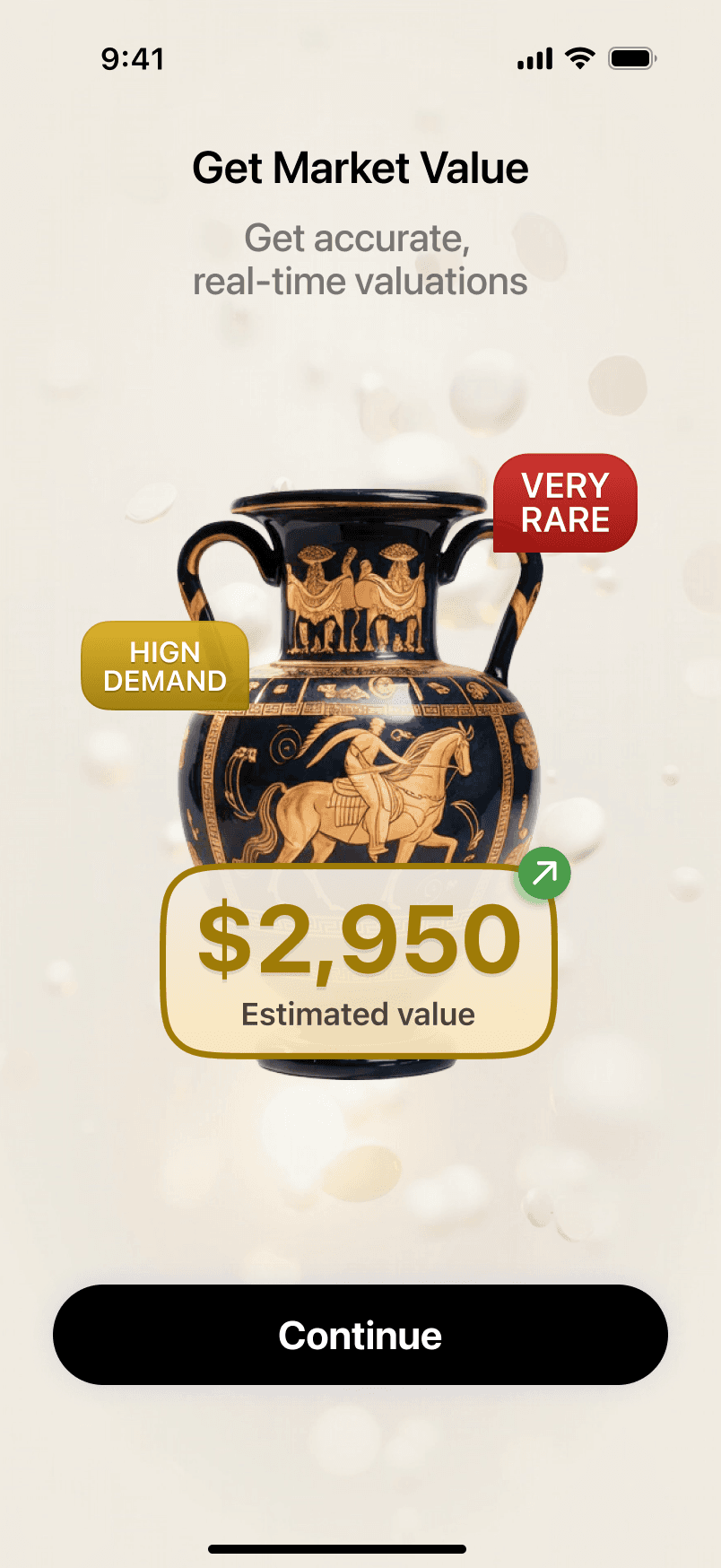 Cross-platform mobile app for discovering, valuing, and collecting antiques — live on the App Store.