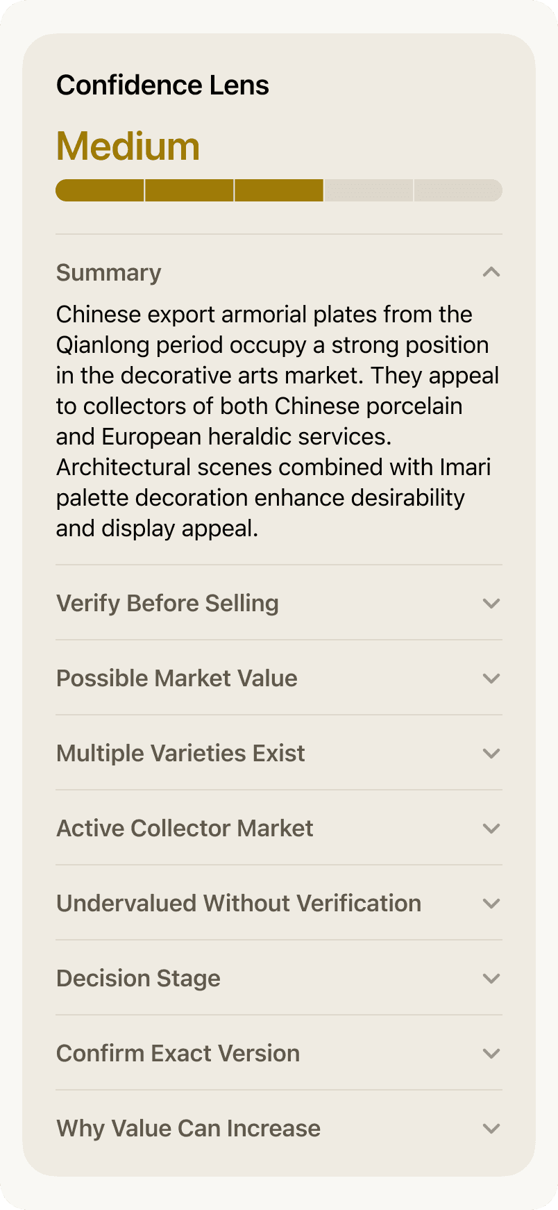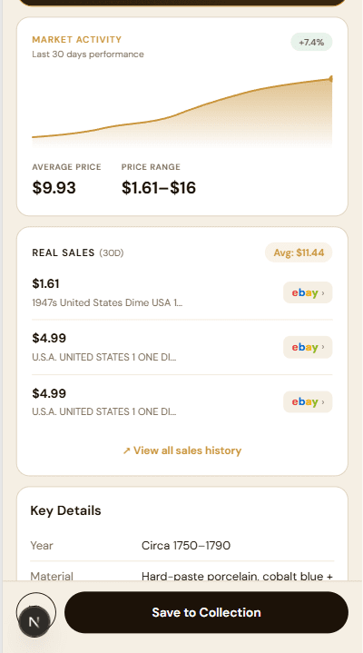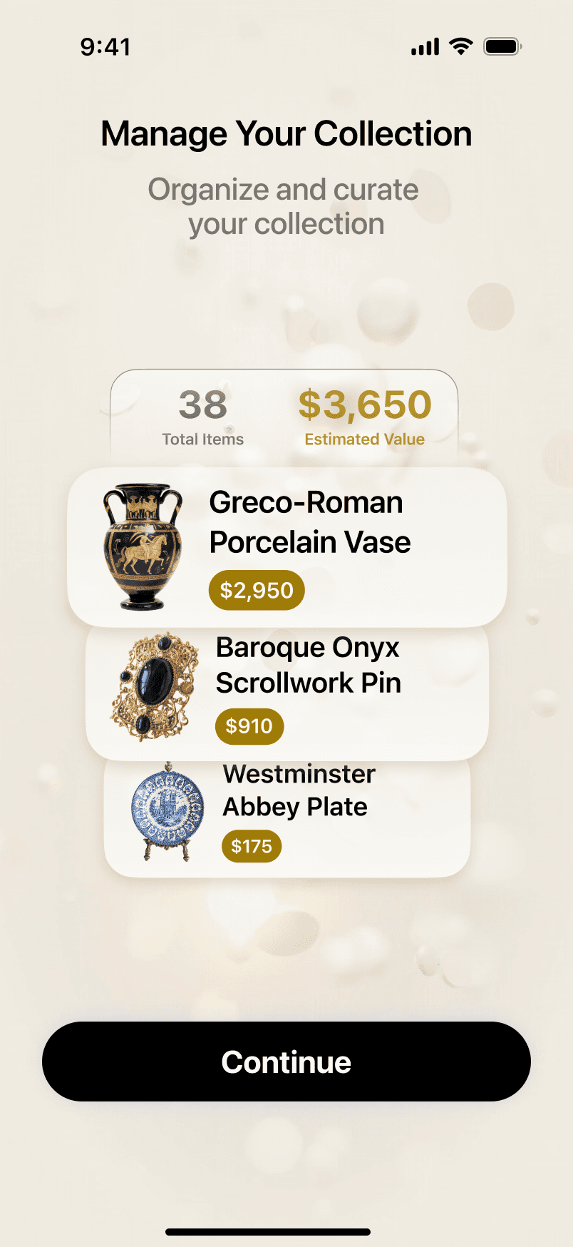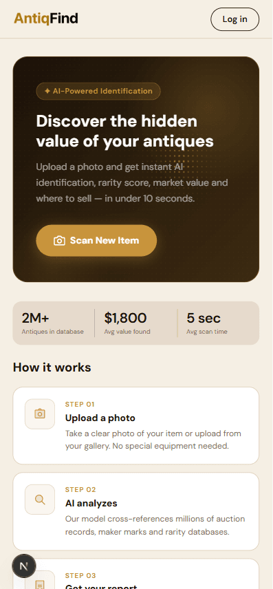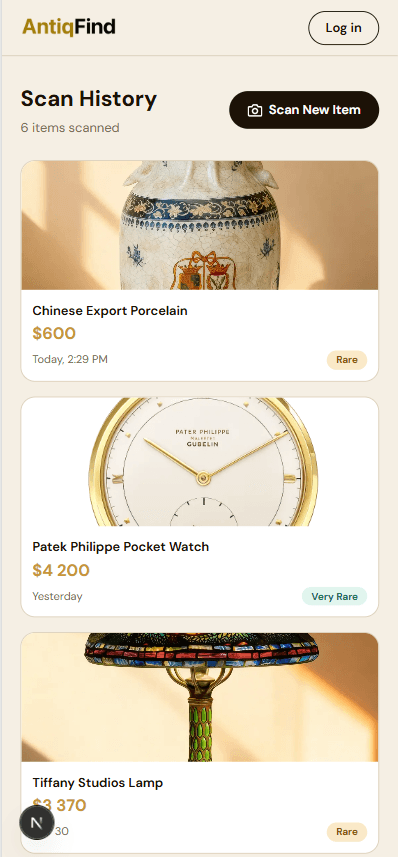 Antique collectors and casual buyers had no dedicated mobile tool to discover items, understand market value, or organize their collections. Existing solutions were either too generic or desktop-only.