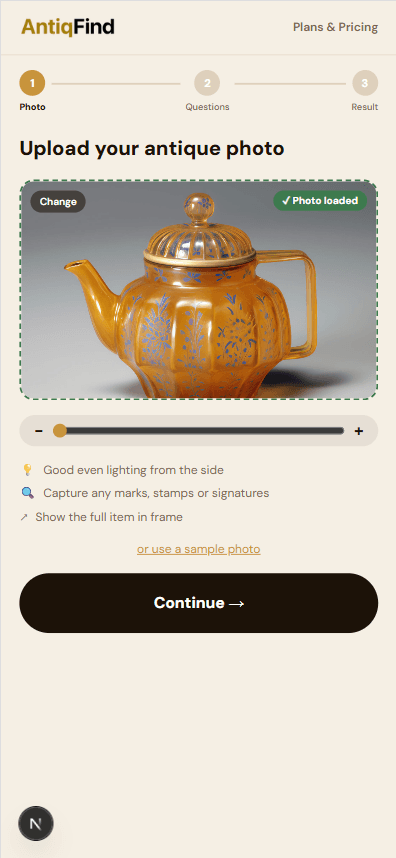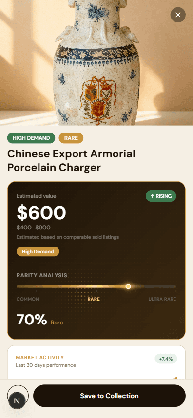 AntiqFind makes it easy to identify antiques, track their market value, and build a personal collection — all from your phone. The app works on both iOS and Android, with a consistent experience across platforms.